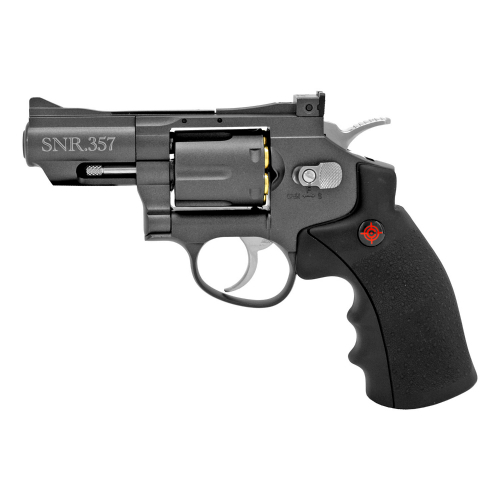 Realism: The Crosman SNR357 CO2 Dual Ammo Revolver is styled after a 357 type snub nosed revolver and looks for the most part true to scale and form. As this product design was one of the first shell loading revolvers back in the day, manufacturers had to use parts that where already available as in the CO2 valves which where at the time a bit longer than they can make now. Because of this, the area between the cylinder and the back the revolver is a bit long to accommodate the longer valves made at that time. This does distorts the gun a little bit but to be honest most people will not notice.