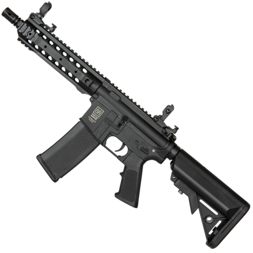 Specna Arms has launched the FLEX™ series, offering affordable airsoft replicas with an advanced quick spring change system. These models are designed for both newcomers and experienced airsoft players, featuring high-quality materials. The body, front end, guide, and pistol grip are made from nylon-reinforced polymer, while the barrel, flash hider, charging handle, and control components are constructed from aluminum alloy and ZnAl. Each replica is expertly assembled, ensuring all receiver parts fit securely together. The lightweight design makes them perfect for fast-paced CQB (Close Quarters Battle) environments, and the nylon fiber reinforcement increases durability. The ESA™ quick spring change system allows users to adjust the power easily without special tools. Compatible with both LiPo and LiFe batteries, the replicas also come with an extra spring for close-range play. The factory-installed main spring offers a muzzle velocity of approximately 375 FPS, ideal for medium-range engagements.